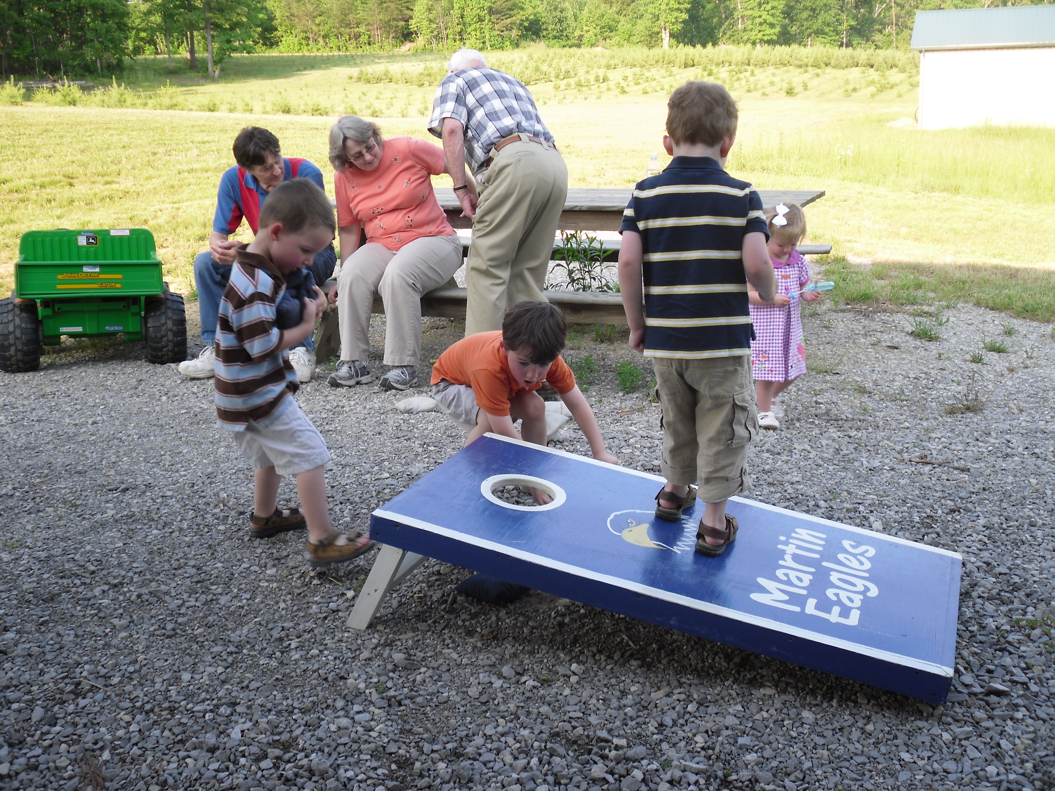 The kids had a little trouble with the corn hole.
