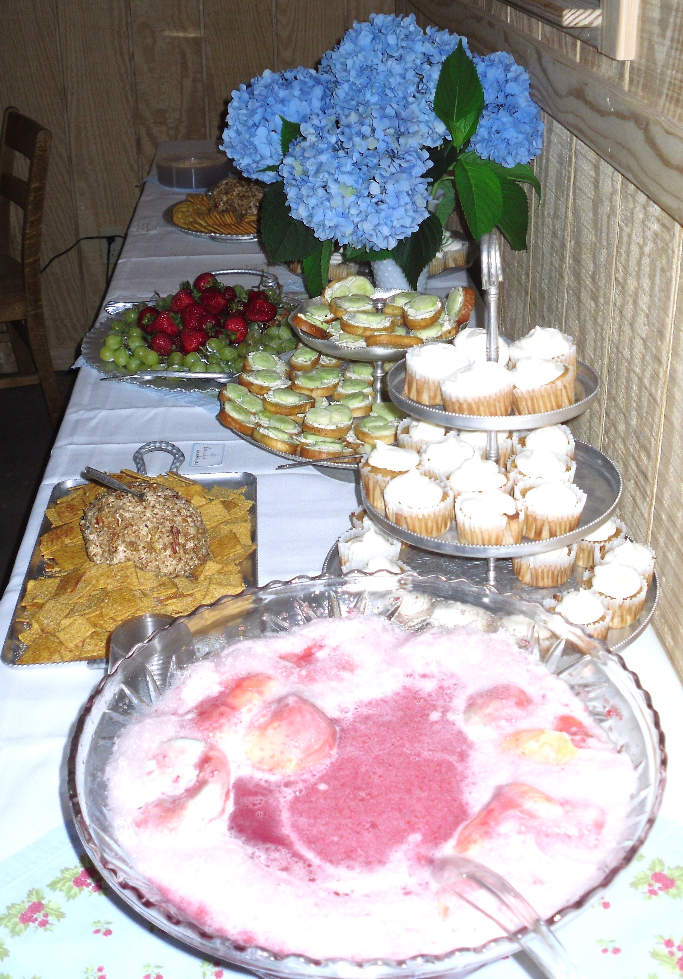Miss May made another appearance along with carrot cake cupcakes, cucumber sandwiches, fresh fruit, and my grandmother’s recipe for cheese ball. The strawberry cranberry punch is a family favorite from Grey Gables in Rugby.