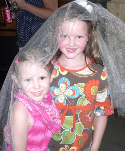 Ava and Liza playing bride. Be still my heart. Hope she has her front teeth for her walk down the aisle.