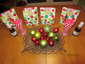 I made gifts tonight for A and G’s teachers. They are just little happy Friday gifts but I hope they convey that I deeply appreciate them. Sparkling cider, fun peppermint glass, and a Christmas ornament. Everything is better with polka dots and a calling card.