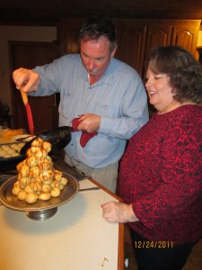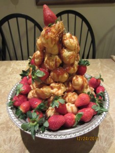 It’s a traditional French dessert made with cream filled pastry held together by caramelized sugar.