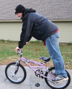 Joey did tricks on A’s new bike- he’s cool like that