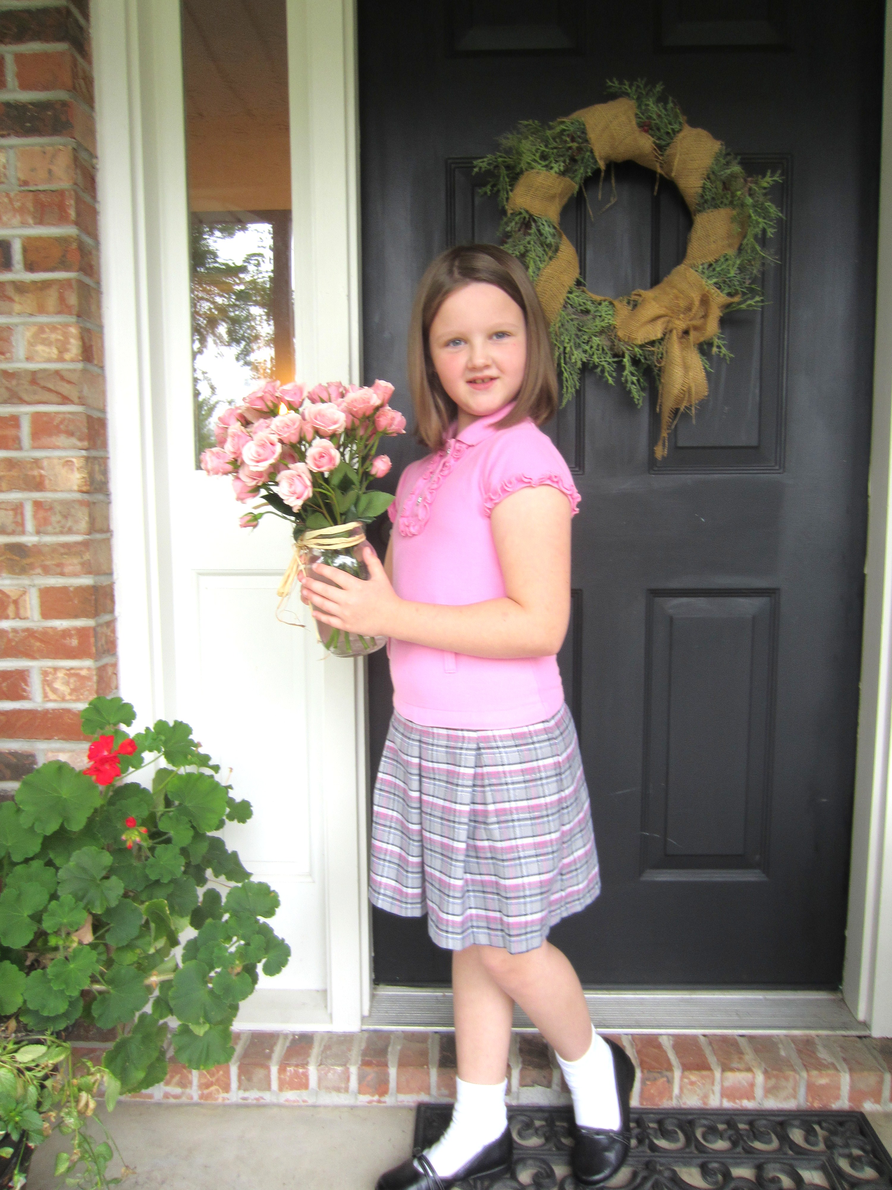 (with a navy and white striped cardi and red beads straight from Africa to support women in poverty, don’t ya know)